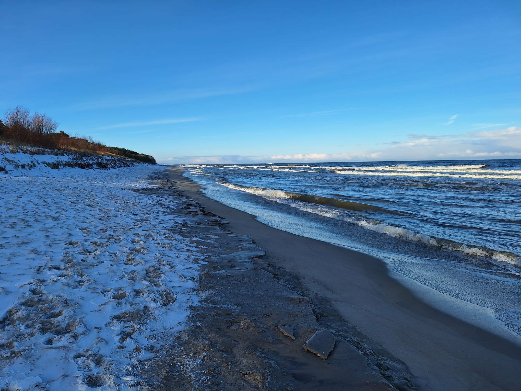 Spokojna zimowa plaża nad Bałtykiem – Jastarnia
